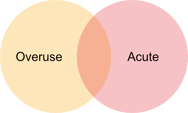 The chart shows that some sports injuries can be both overuse-related and acute. Source: sportsmedinfo.sg