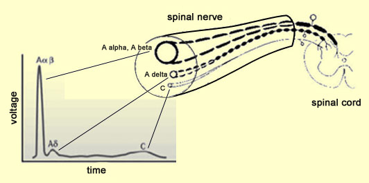Sensory nerve fiber types — Aα, Aβ, Aδ, and C fibers, with conduction speed and roles in pain perception. Source: Thebrain.mcgill.ca