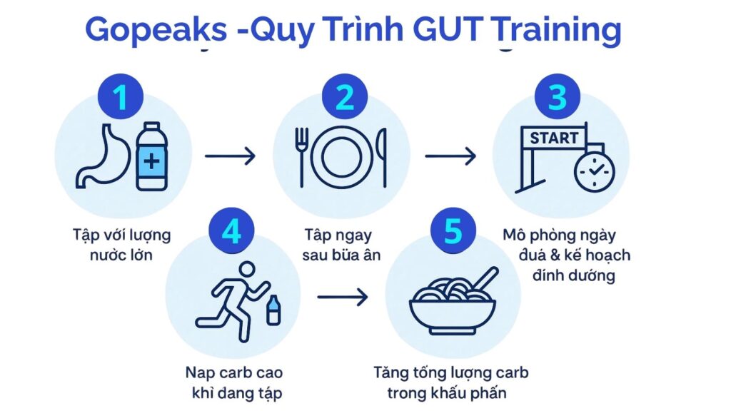 Gut training is a nutritional strategy designed to train an athlete's gut to handle high energy intake during endurance competitions. In endurance events such as marathons, road cycling, or triathlons (Ironman 70.3 Phu Quoc, etc.), the ability to efficiently process carbohydrates during exercise is crucial to performance. This article will detail gut training: its definition, importance, scientific basis, research evidence, cyclical practice methods, and long-term benefits for endurance athletes.