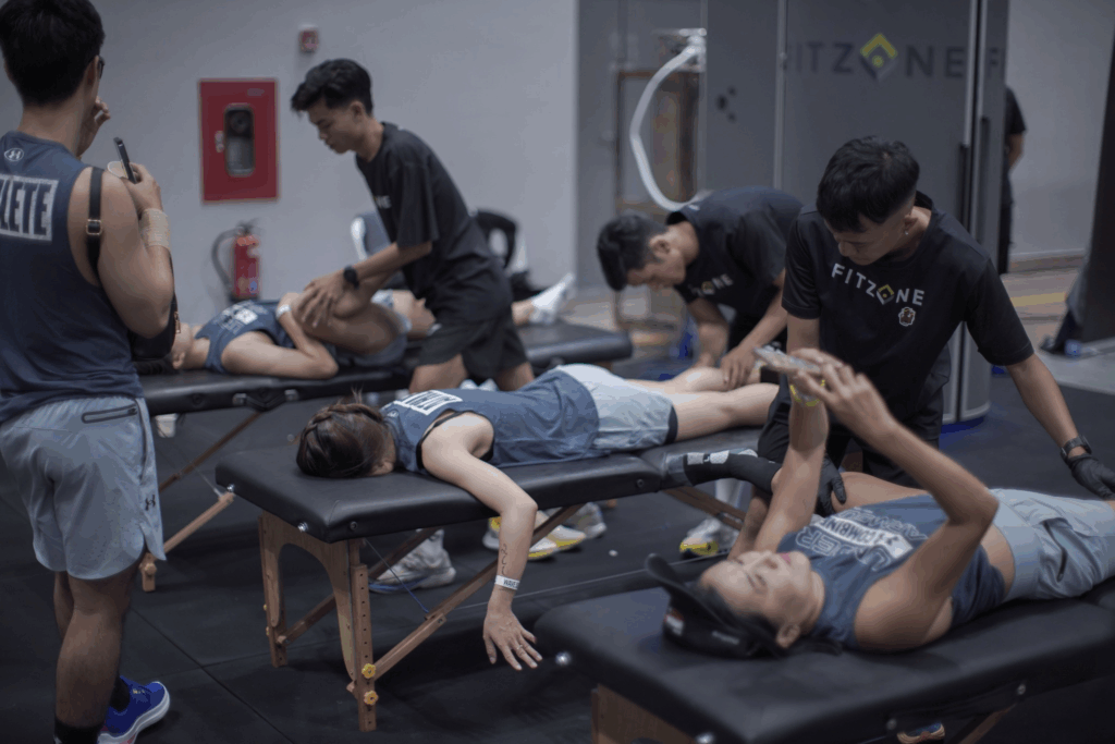 The specialists at Fitzone perform sports massage and stretching to help athletes recover faster. Source: Fitzone